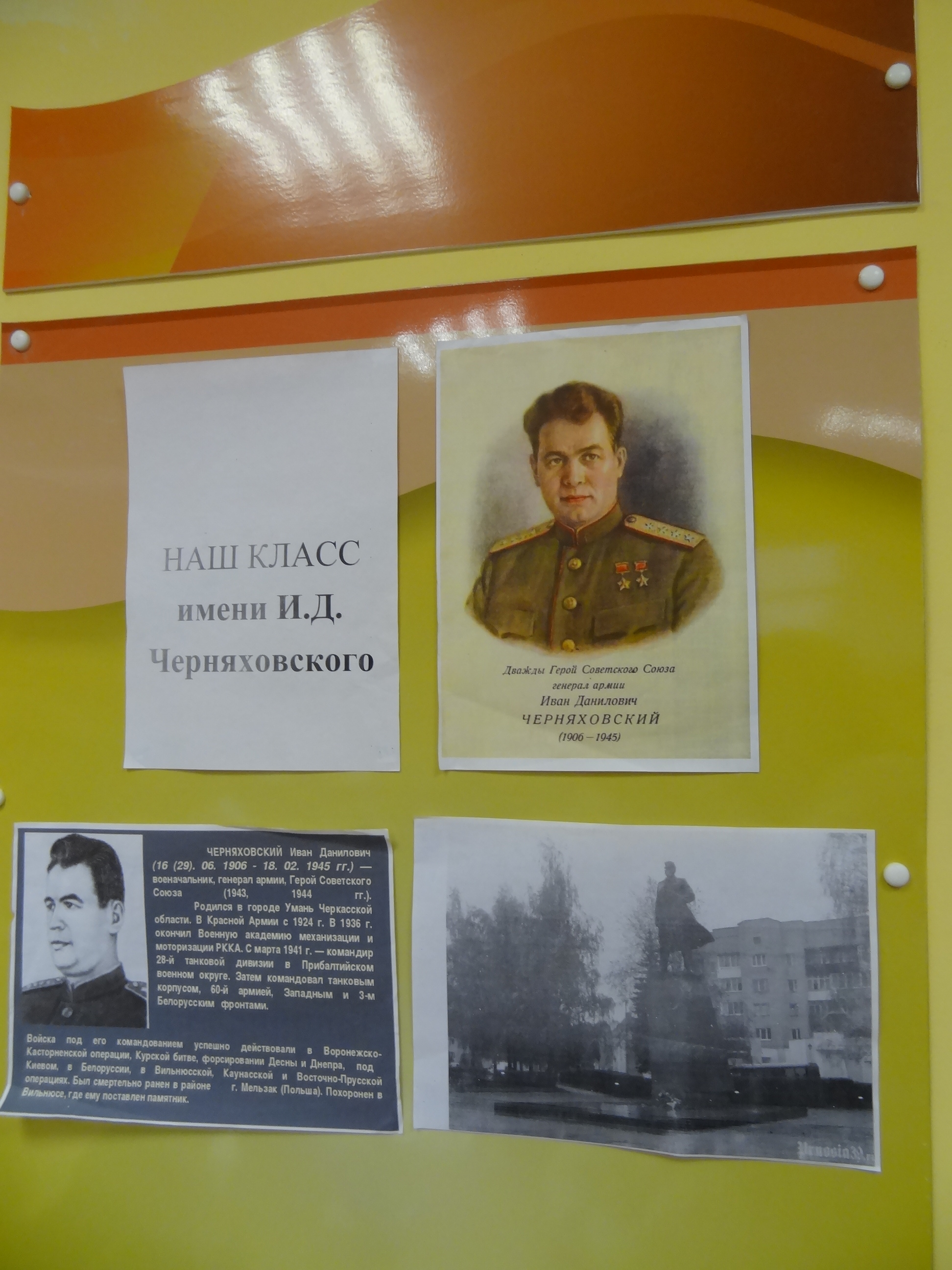 Наш класс имени И.Д. ЧерняховскогоИсследовательская деятельность на тему: "Дважды Герой Советского Союза И.Д. Черняховский". (Для просмотра файла нажмите на название).