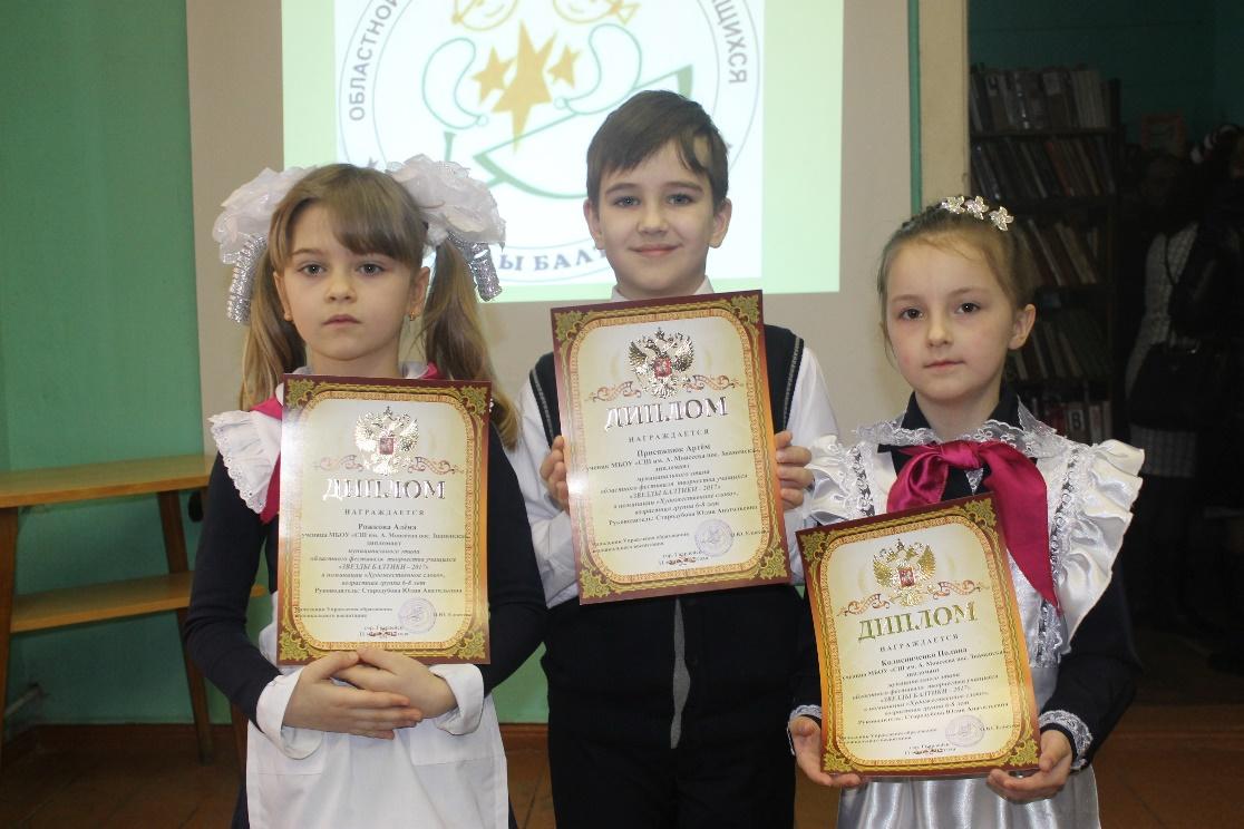 11 марта стартовал муниципальный этап традиционного областного фестиваля творчества учащихся «Звёзды Балтики». Учащиеся 1 «Б» класса Колесниченко Полина, Присяжнюк Артём и Рожкова Алёна приняли участие в номинации «Художественное слово» (возрастная груп
