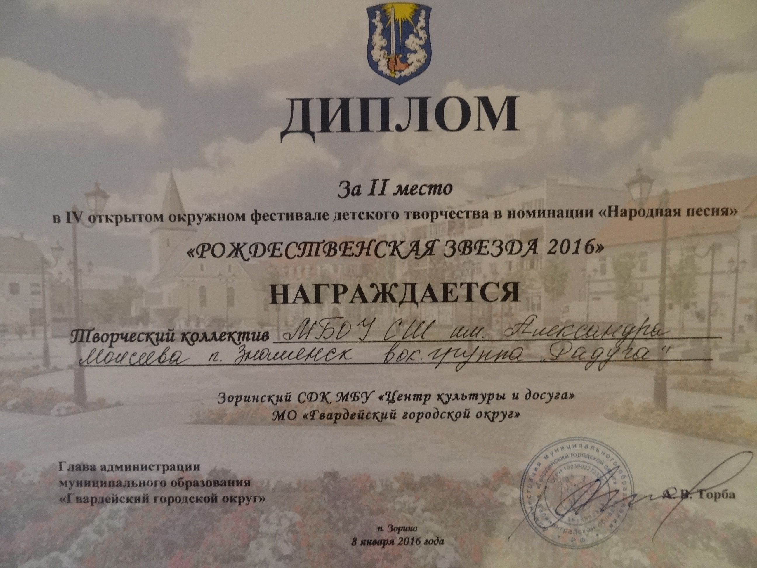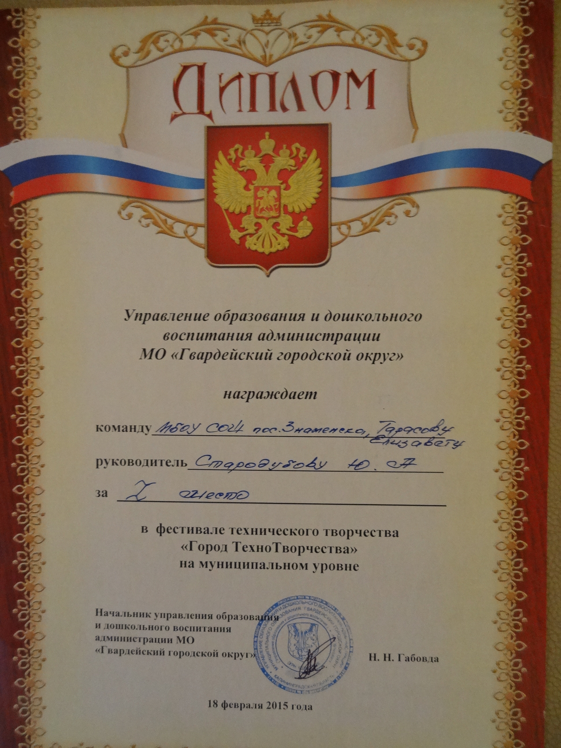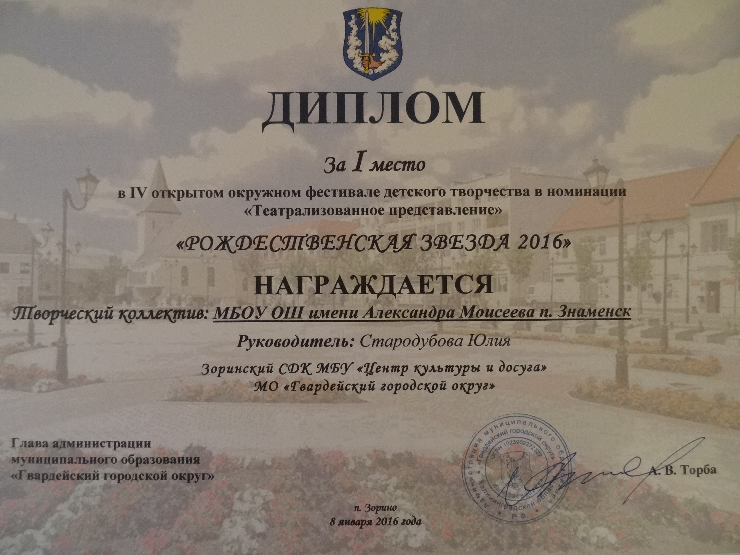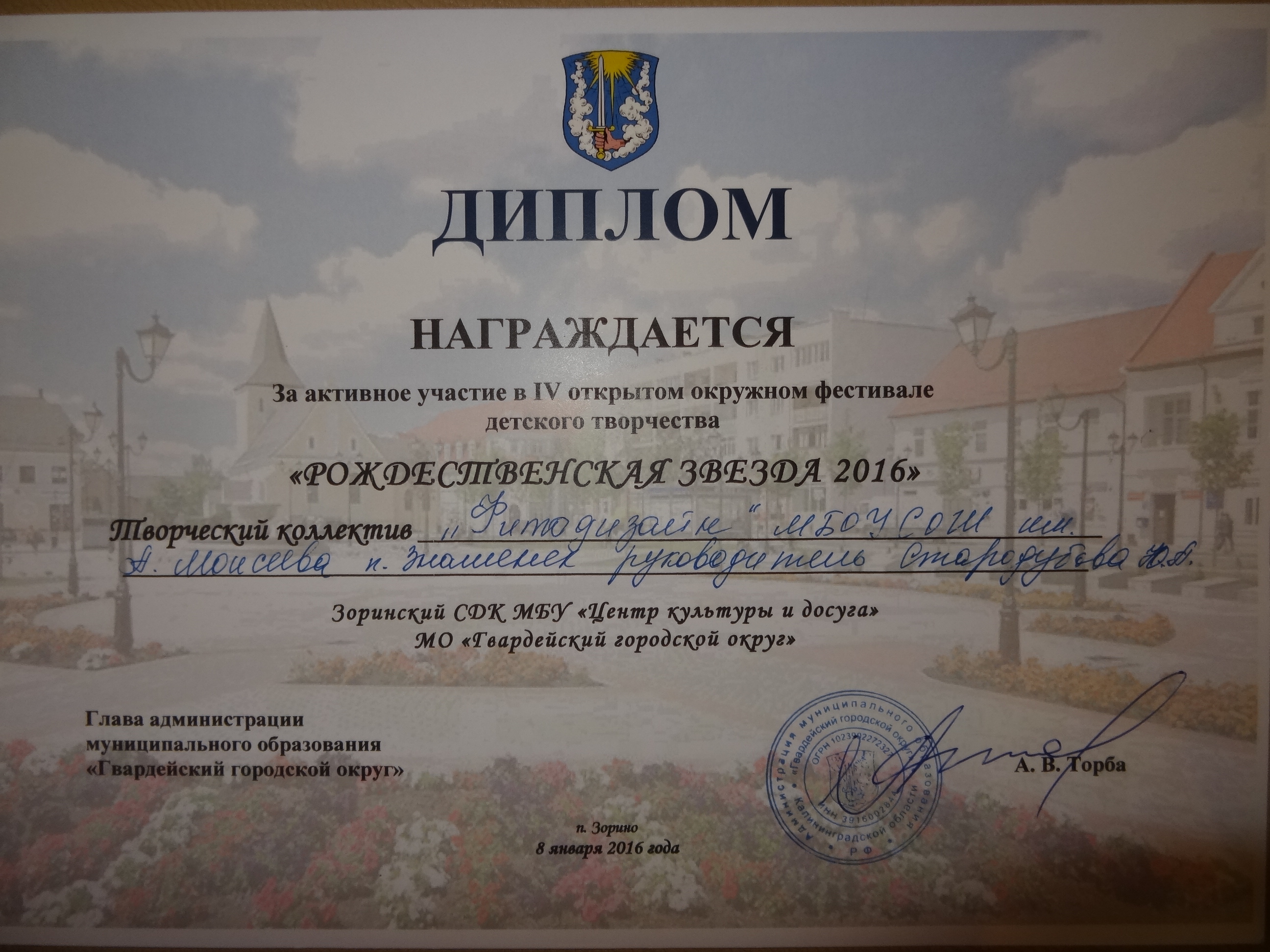 Диплом. Областной фестиваль творчества учащихся "ЗВЁЗДЫ БАЛТИКИ" - лауреат III степени.