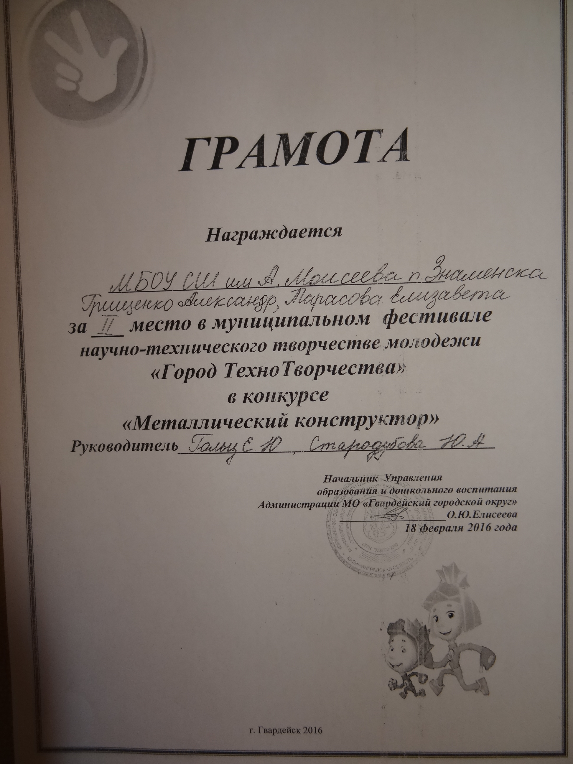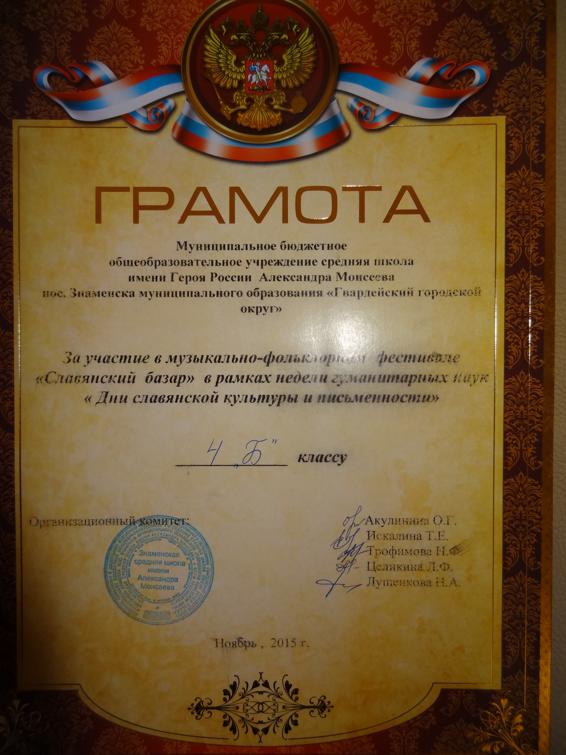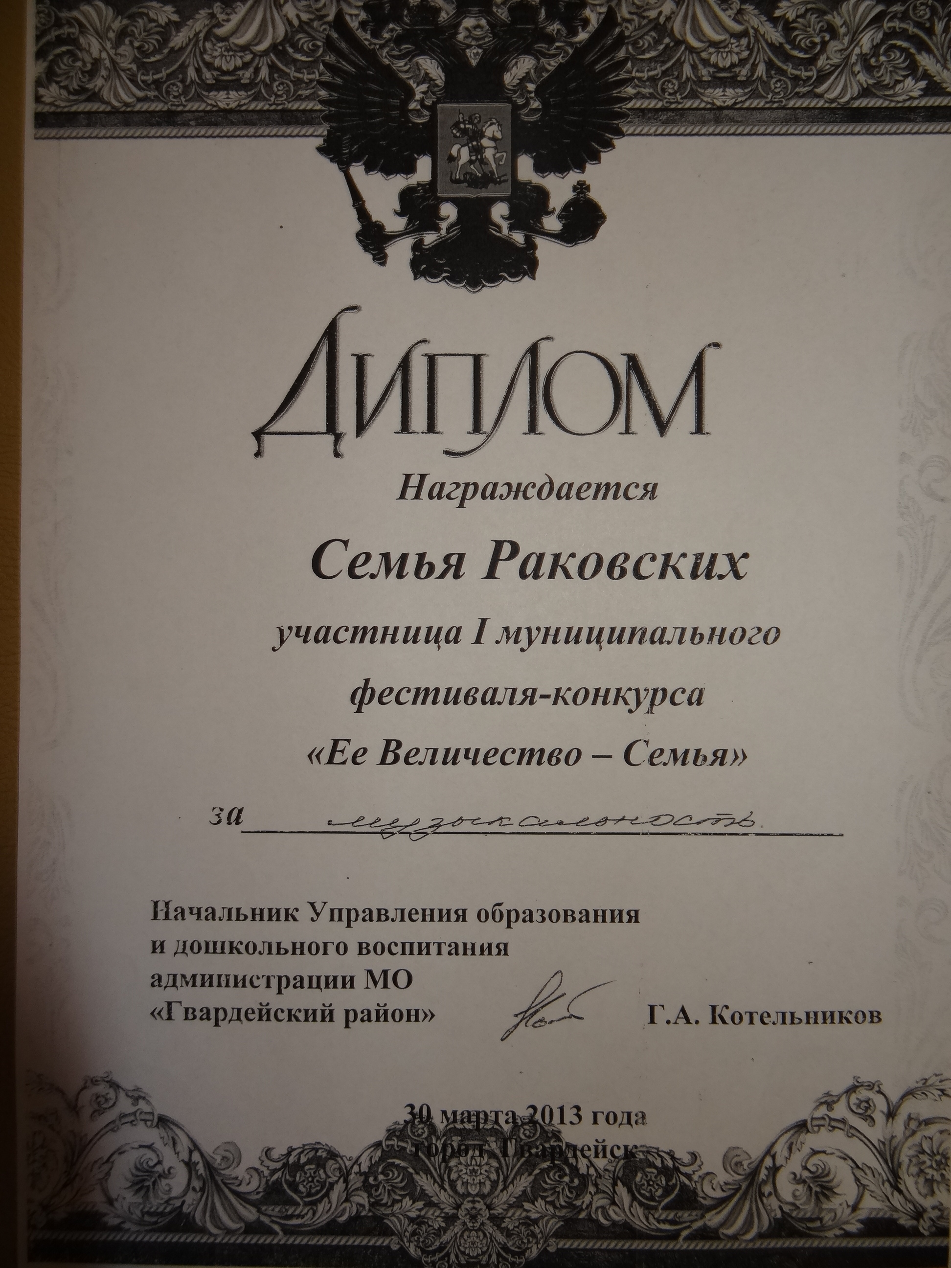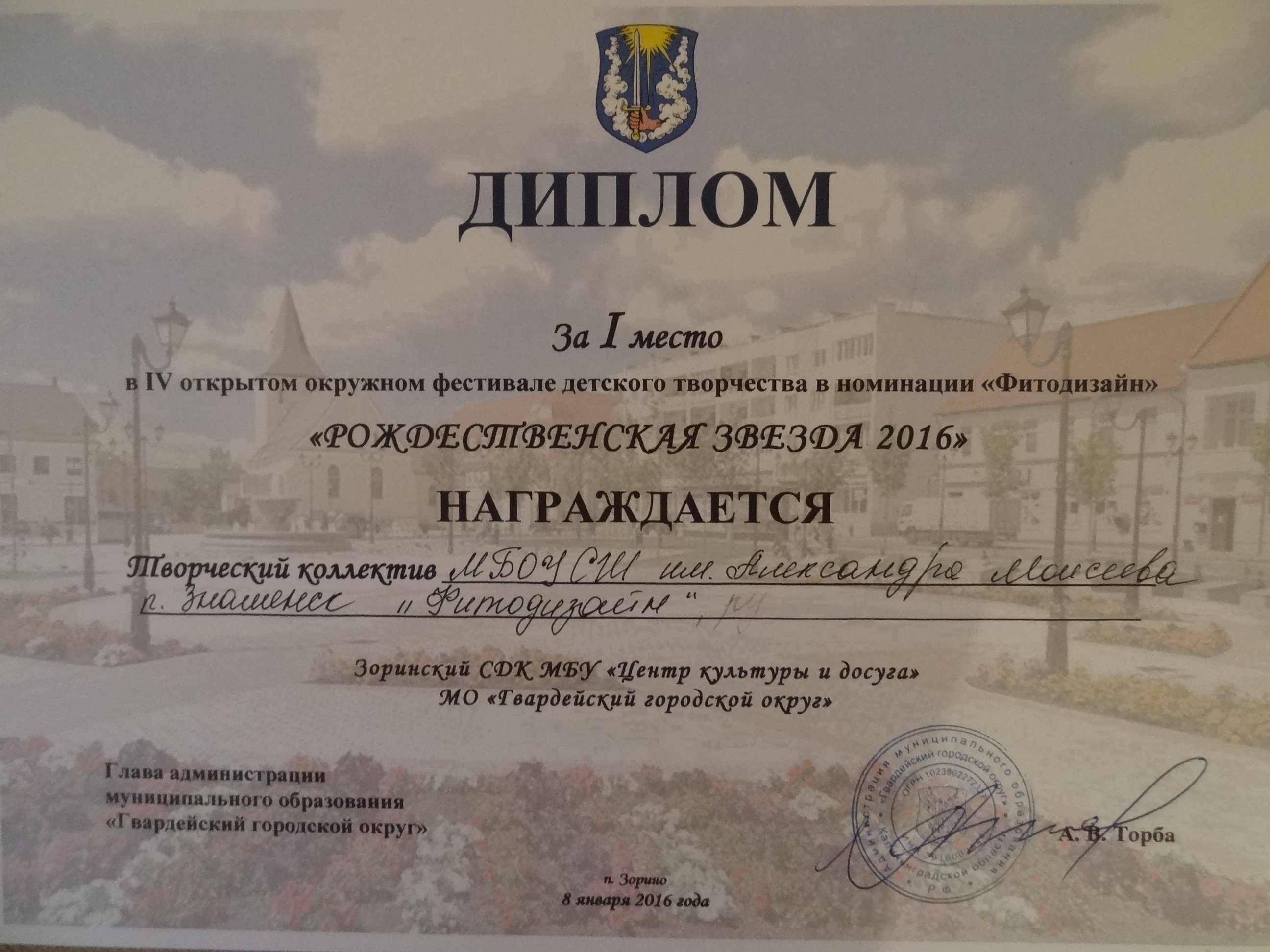 Диплом. Областной фестиваль творчества учащихся "ЗВЁЗДЫ БАЛТИКИ" - лауреат III степени.